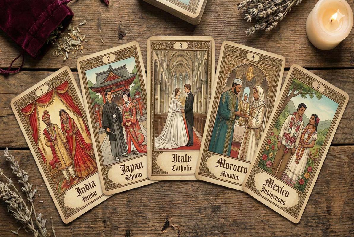 Upright: Wedding rituals, spiritual guidance, ethical partnership.